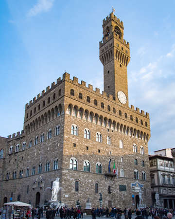 FLORENCE, ITALY - February 06, 2017: Exterior view of the Palazzo Vecchio at the Piazza della Signoria in FIRENZE