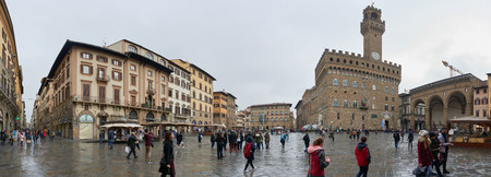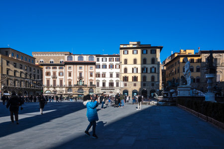 Florence, Italy - Febuary 17, 2016: Piazza della Signoria, a square in front of the Palazzo Vecchio in Firenze, Italy. It is located between Ponte Vecchio and Piazza del Duomo.