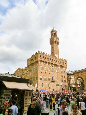 Florence, Italy - May 01, 2014: Palazzo Vecchio is the town hall of Florence. The palace was built in 1299 and since 1872 it has housed the office of the mayor of Florence, Italy