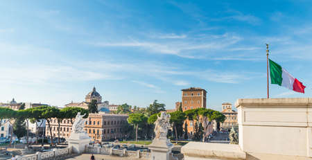 ROME, ITALY - JUNE 23, 2017: Panoramic view of City of Rome from the roof of Altar of the Fatherland, Italy