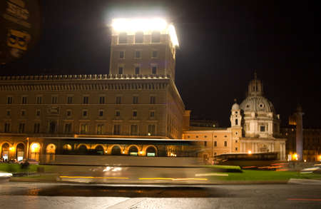 Rome, ITALY - OCTOBER 16, 2011 - Piazza Venezia in the center of Rome at night.