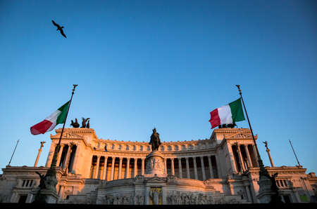 Monument of Victor Emmanuel: Altare della Patria, Monumento Nazionale a Vittorio Emanuele II, Vittoriano on the sunset in Rome, Italy