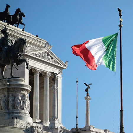 Flag of Italy at the Vittorio Emanuele II monument in Rome