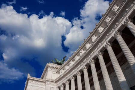 National Monument to Victor Emmanuel II first King of Italy (Altar of Nation), a neoclassical structure designed by italian architect Sacconi in 1885, with blue sky and clouds