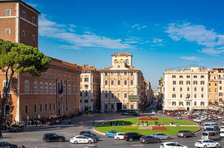 Rome, Italy - November 11, 2018: Piazza Venezia, view from Vittorio Emanuele II Monument, Rome