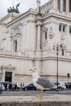 Seagull with Monument to Victor Emmanuel II also known as Fatherland in Rome, Italy.