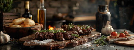 Mouthwatering grilled meat slices sizzling on a barbecue grill, showcasing rich flavors and perfect grill marks. Ideal for food enthusiasts and cooking lovers.