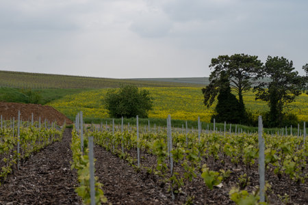 Villedommange France - View of Champagne vineyards under a cloudy sky in the afternoon
