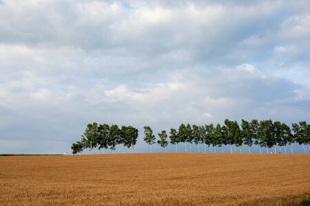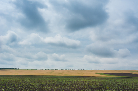 View of a wheat field in the countryside of Champagne area under a cloudy sky in the afternoon