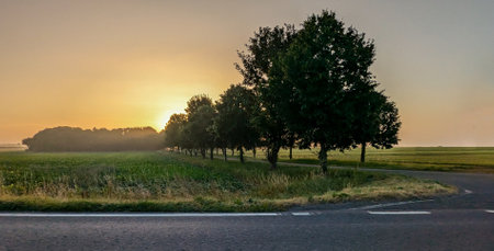 Awe inspiring colours as the sun goes down behind a lovely landscape, seen from a country road, within the United Kingdom.