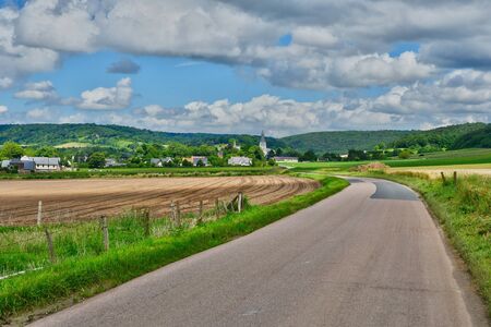 Les Thilliers en Vexin, France - august 8 2019 : the D 6014 road between Magny en Vexin and Fleury sur Andelle