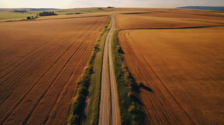 AI Generated. Stunning Summer Countryside Landscape with Golden Fields and Dirt Roads