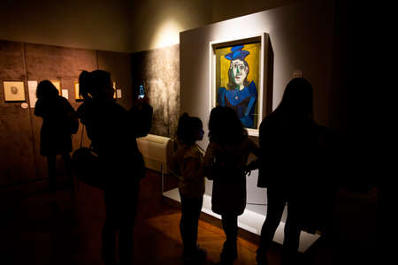 PARIS, FRANCE - OCTOBER 5 2018 - Exposition of Pablo Picasso at Orsay Museum full of tourist, from blue to pink period