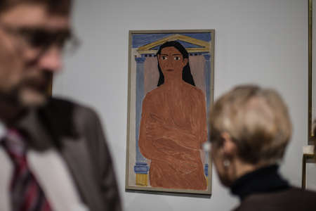 Saint-Petersburg, Russia - November 30, 2016: Exhibition in the Central Exhibition Hall Manege. Greek art from 1930 to the present day.