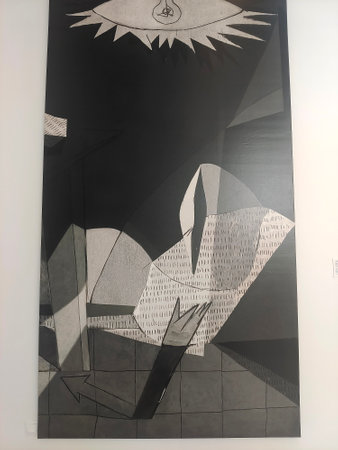 Madrid-July 5: Unknown people standig before the most famous painting by Pablo Picasso Guernica in Museo Nacional Centro de Arte Reina Sofia - Madrid on July 5, 2009