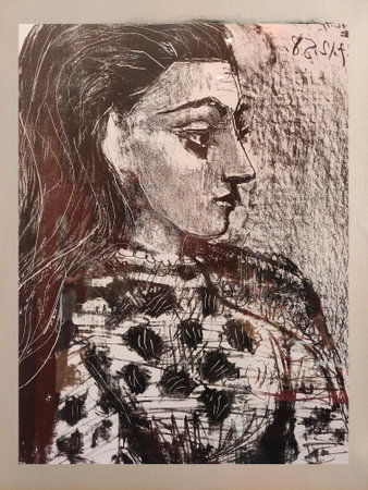 Malaga, Spain-Octuber 2022. Picasso Museum in Malaga province. You can see detail of cubism art.