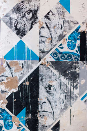 LAGOS, PORTUGAL - OCTOBER 23, 2021: Contemporary abstract graffiti with face of man on a wall.