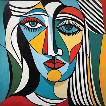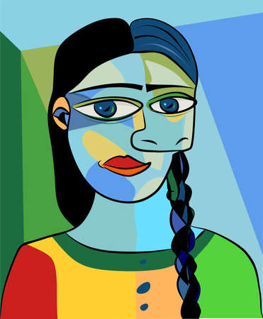 Colorful abstract background, cubism art style, girl with braid