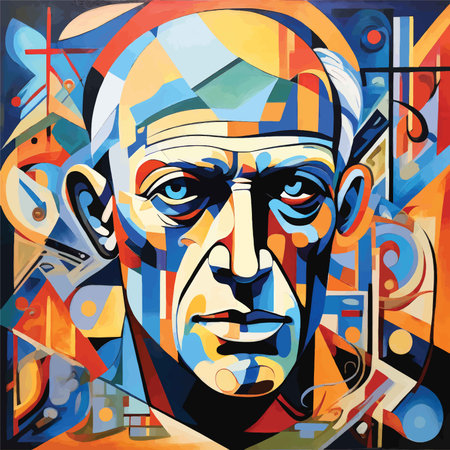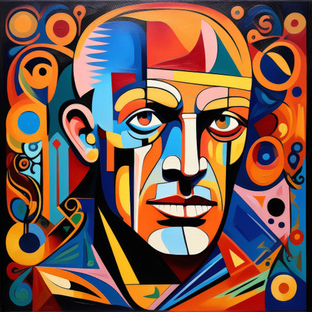 Cubist painting representing a face with intense eyes looking directly at you
