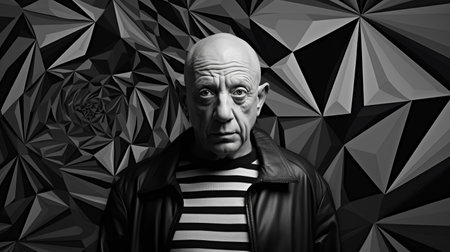 cubism artwork depicts a melancholic atmosphere in a striking black and white palette, skillfully rendered with a single, expressive line that conveys the emotional depth of triste, evoking a sense of somber contemplation and introspection in the viewer. ai generated