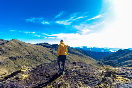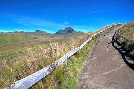 Beautiful scene of the Ecuadorian Andes, on a sunny day, with a walk trail on the side
