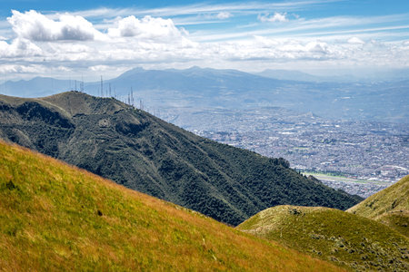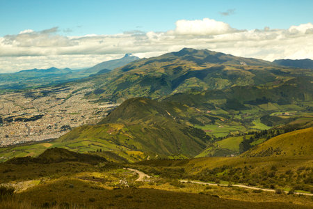 Andes range mountains landscape scene from the top of Cruz Loma hill, Quito Ecuador