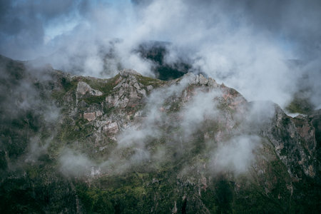 Amazing and scenic landscape with clouds near the TelefériQo station, Quito, Ecuador