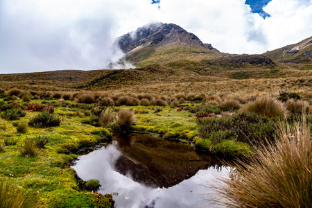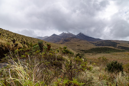 Mountain landscape on the way to the Pichincha volcano. Amazing wildlife and flora of the Andean highlands, at 4000 meters above sea level. Quito. Ecuador 2015