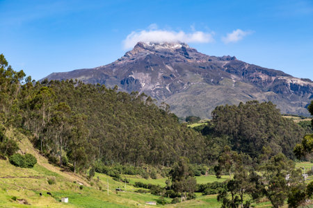 Imbabura Volcano situated in the north of ecuador with a beutiful blue sky in the background with some clouds