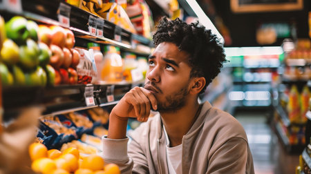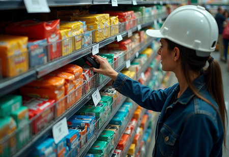 Worker stocking store shelves with fresh products. Generative AI illustration