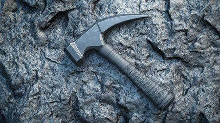 A metal hammer placed on a rugged rocky surface, representing strength and durability. Ideal image for construction, repair, and craftsmanship related projects.