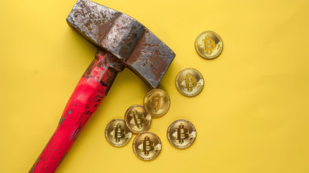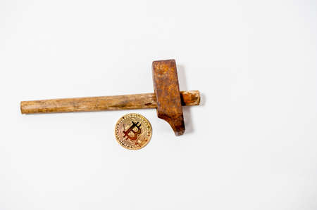 bitcoin electronic coin with iron hammer