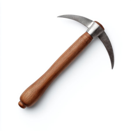 A traditional handcrafted tool featuring a sturdy wooden handle and sharp metal blade, ideal for gardening and crafting projects, offering durability and precision.