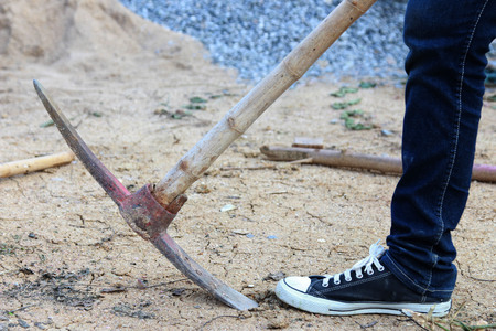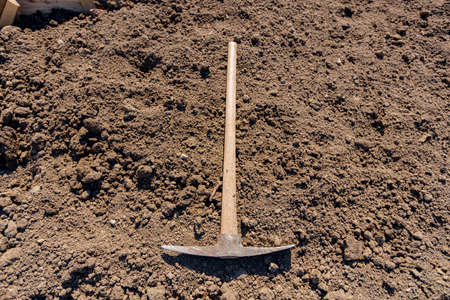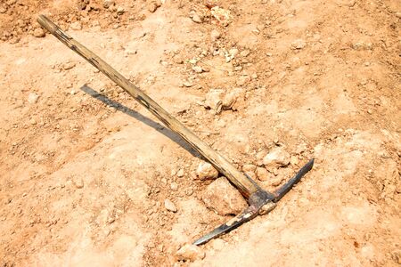 Pickaxe industry tool for digging was putted on the ground.