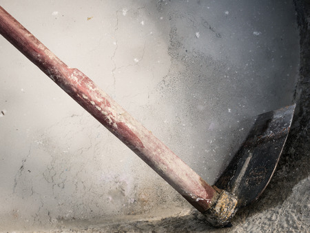 Construction shovel in a pile of sand close-up. working building tool. Builder's hand tool. sand and shovel