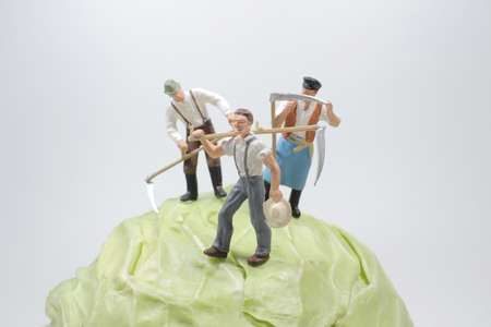 the mini fun of farmers harvesting cabbage