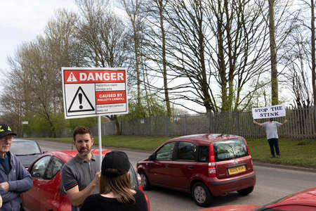 protesters demonstrating outside of walleys quarry waste landfill site Silverdale Newcastle under Lyme Staffordshire stop the stink campaign