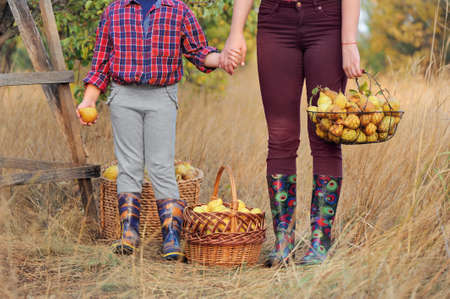 No face picture of mother and daughter with baskets with pears