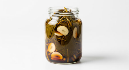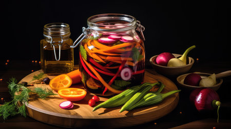 Aromatic Pickled vegetables jar kitchen. Cooking spices. Generate Ai
