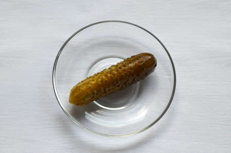 small pickled cucumber on a transparent plate