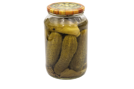 Home canning. A jar of pickles. Isolate on white background.