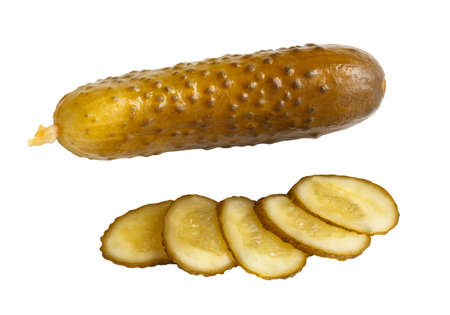 Sliced marinated cornichon isolated on the white background