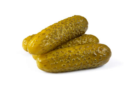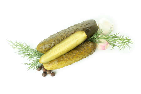 marinated pickled cucumbers isolated on white. Pickled green gherkins