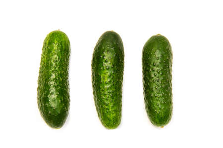 Three cucumbers on a white background