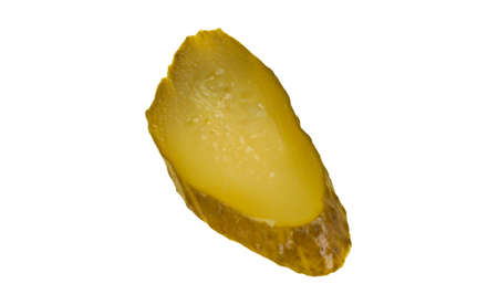 Piece of pickled cucumber isolated on white background.