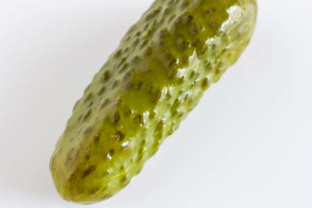Green pickled cucumber closeup, isolate on white background