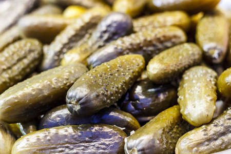 Pickles as background. Green pickle texture pattern. pickled cucumber,