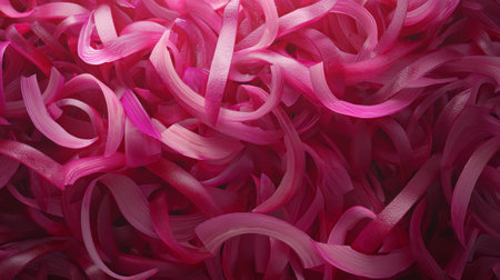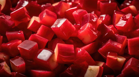 This close-up image features bright pink slices of sweet candy arranged in artistic disarray. The glossy texture and vibrant color create an appealing visual perfect for food-related themes.