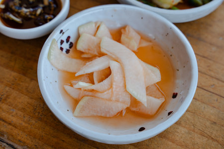 Korean food Pickled Radish Slices in Light Brine