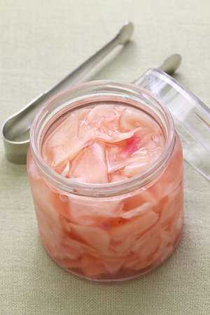 homemade sweet pickled ginger, ginger sushi and japanese food